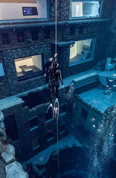 Dive up to 12 meters and uncover a unique, submerged city within this record-breaking pool.
